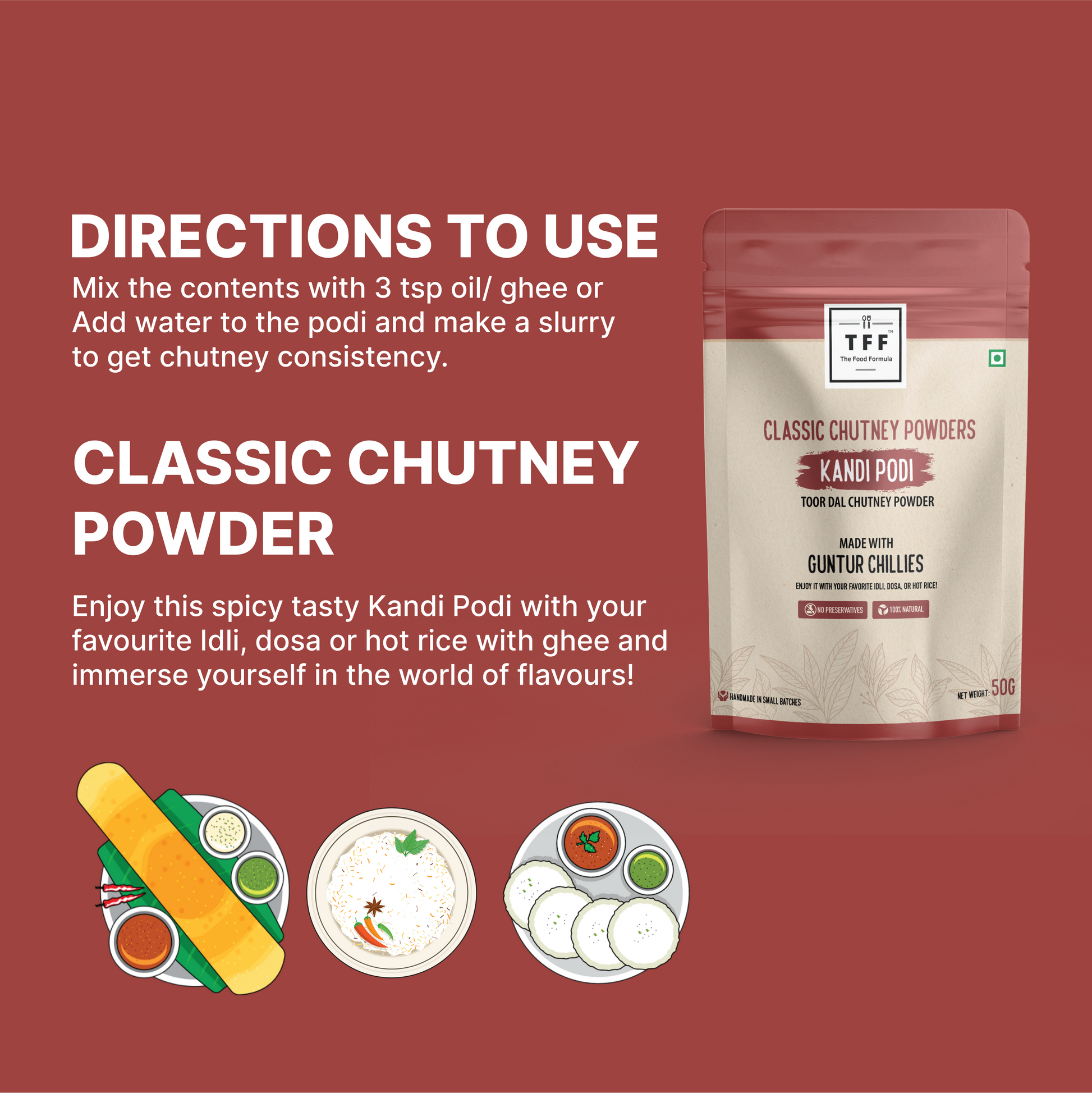 Enjoy this spicy tasty Kandi Podi with your favourite Idli, dosa or hot rice with ghee and immerse yourself in the world of flavours