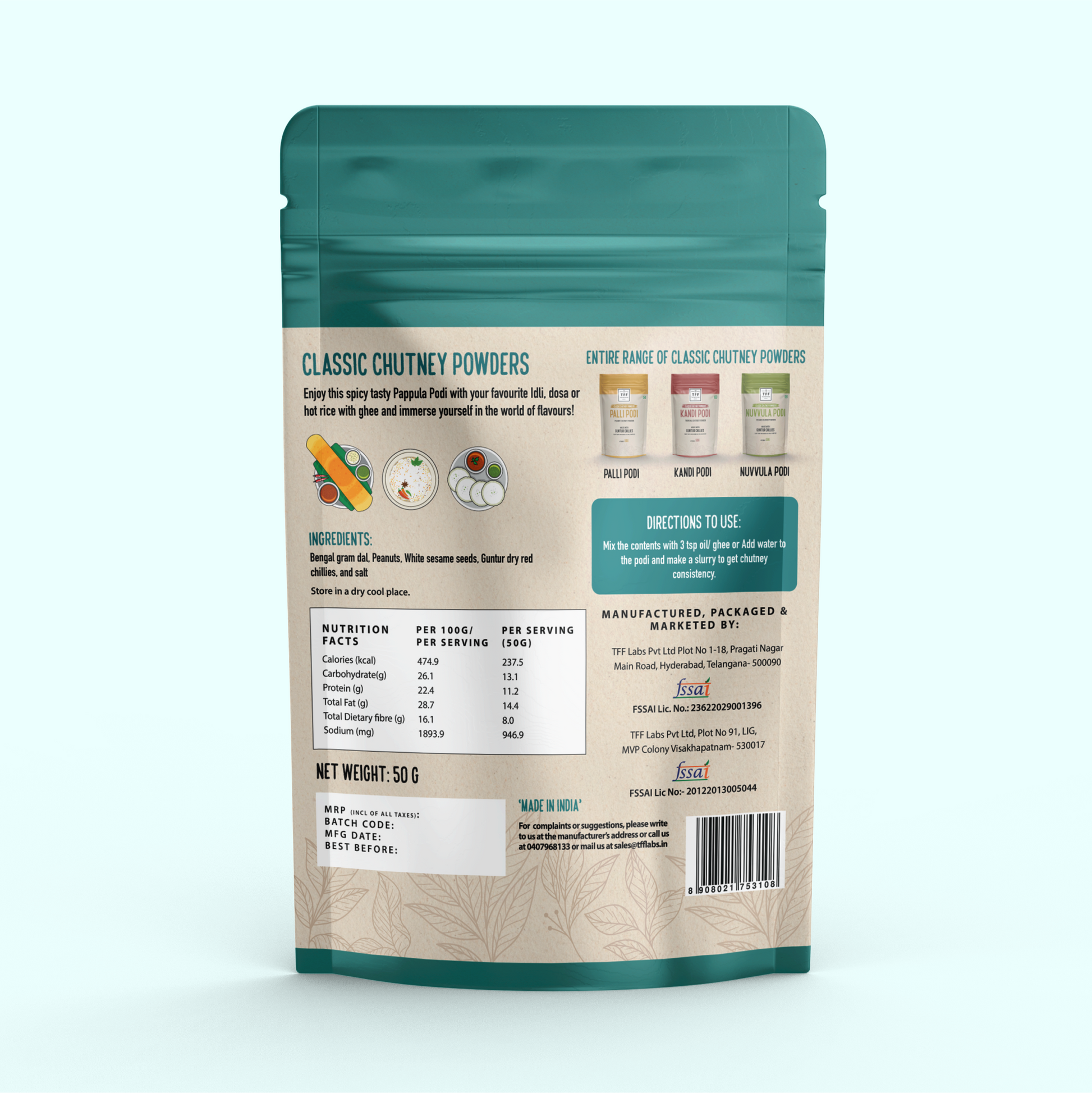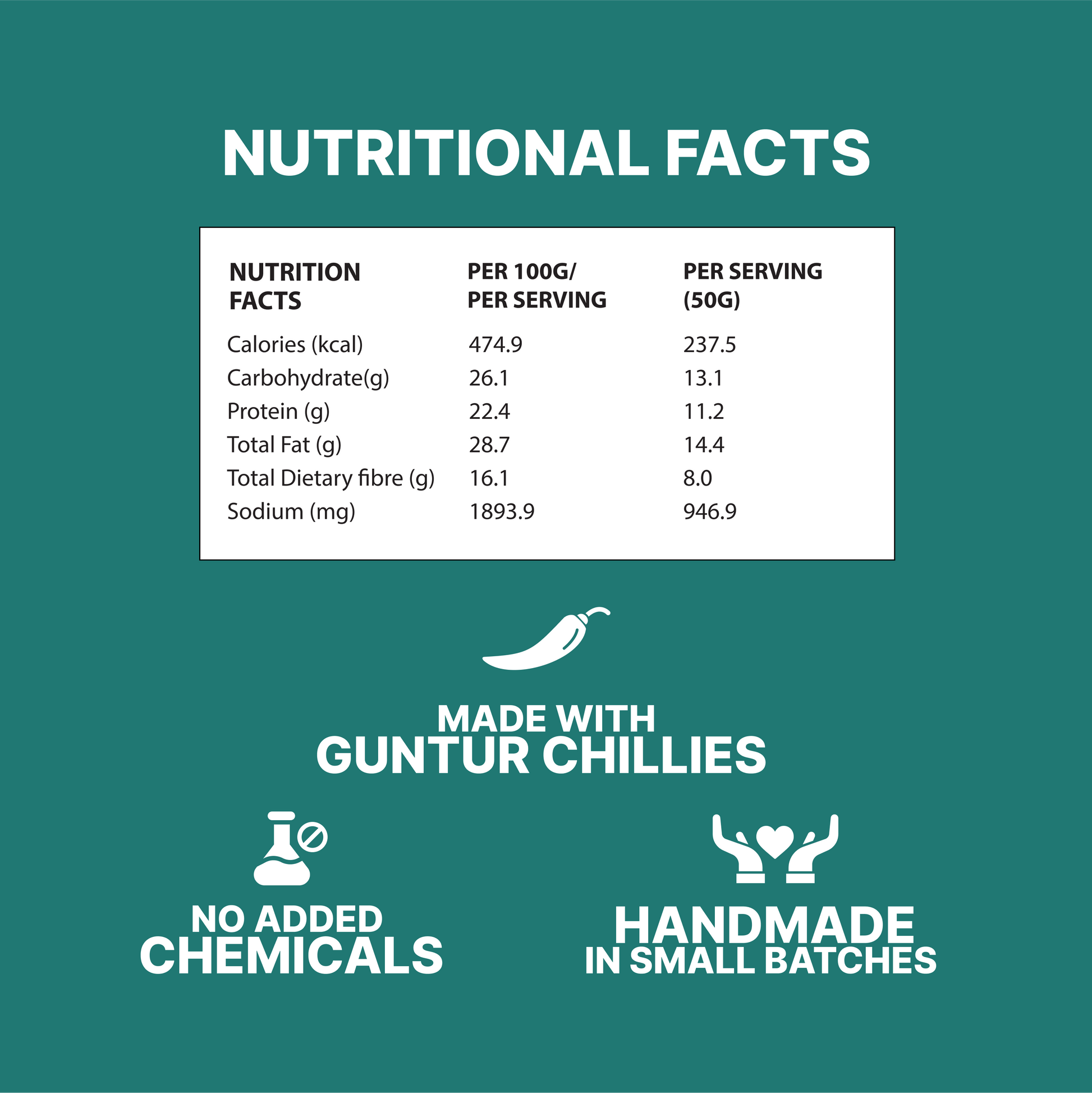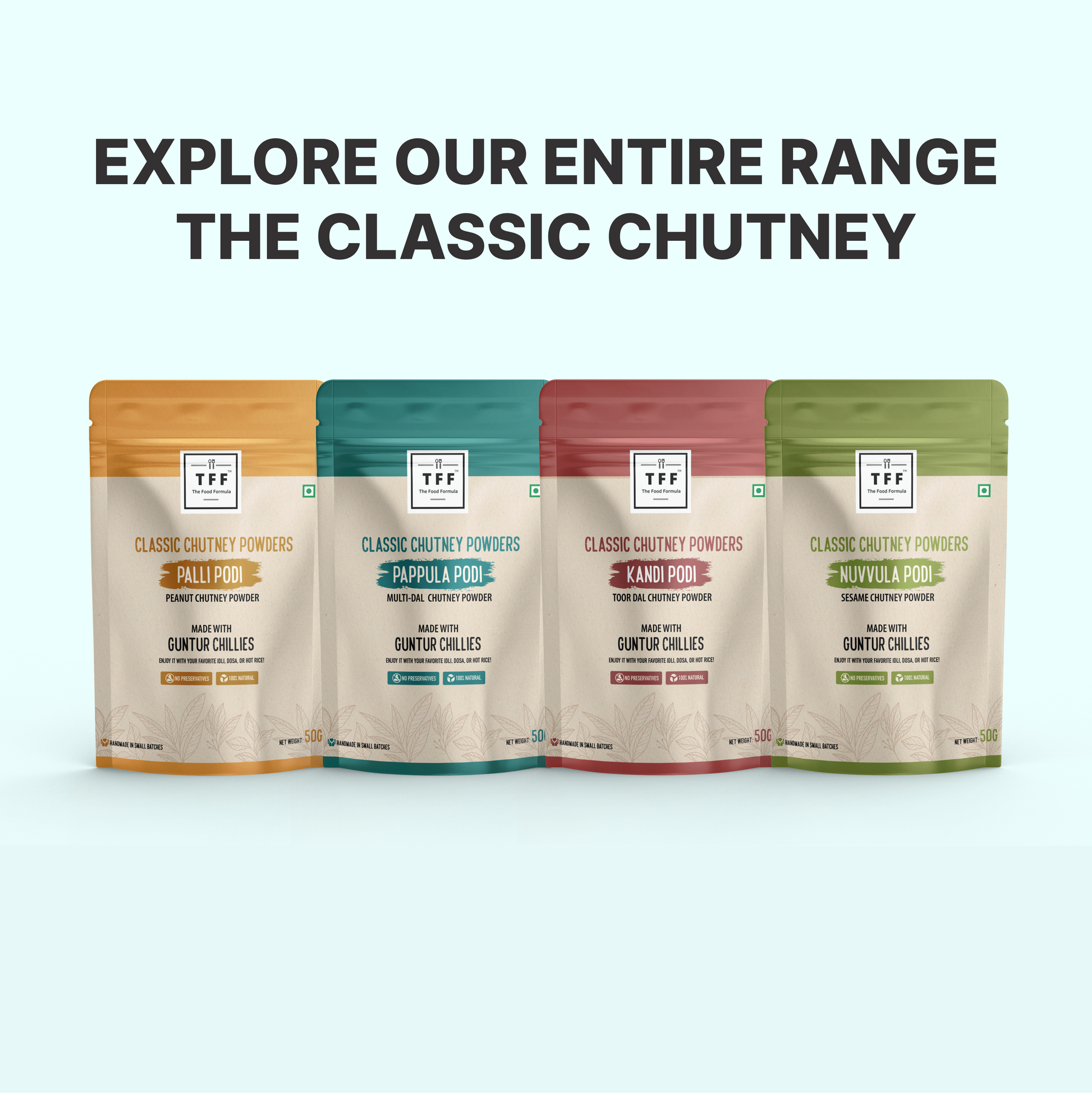 Ingredients: Bengal gram dal, Peanuts, White sesame seeds, Guntur dry red chillies, and salt