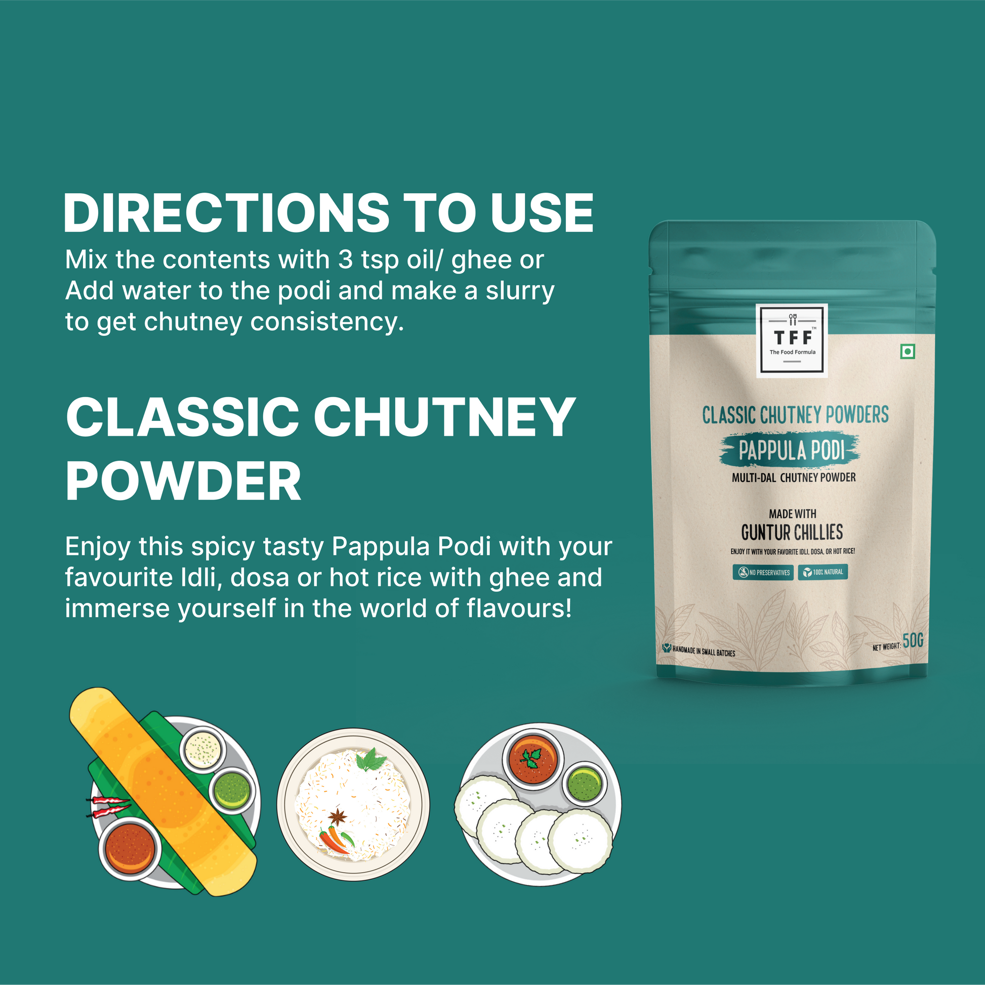 Mix the contents with 3 tsp oil/ ghee or add water to the podi and make a slurry to get chutney consistency
