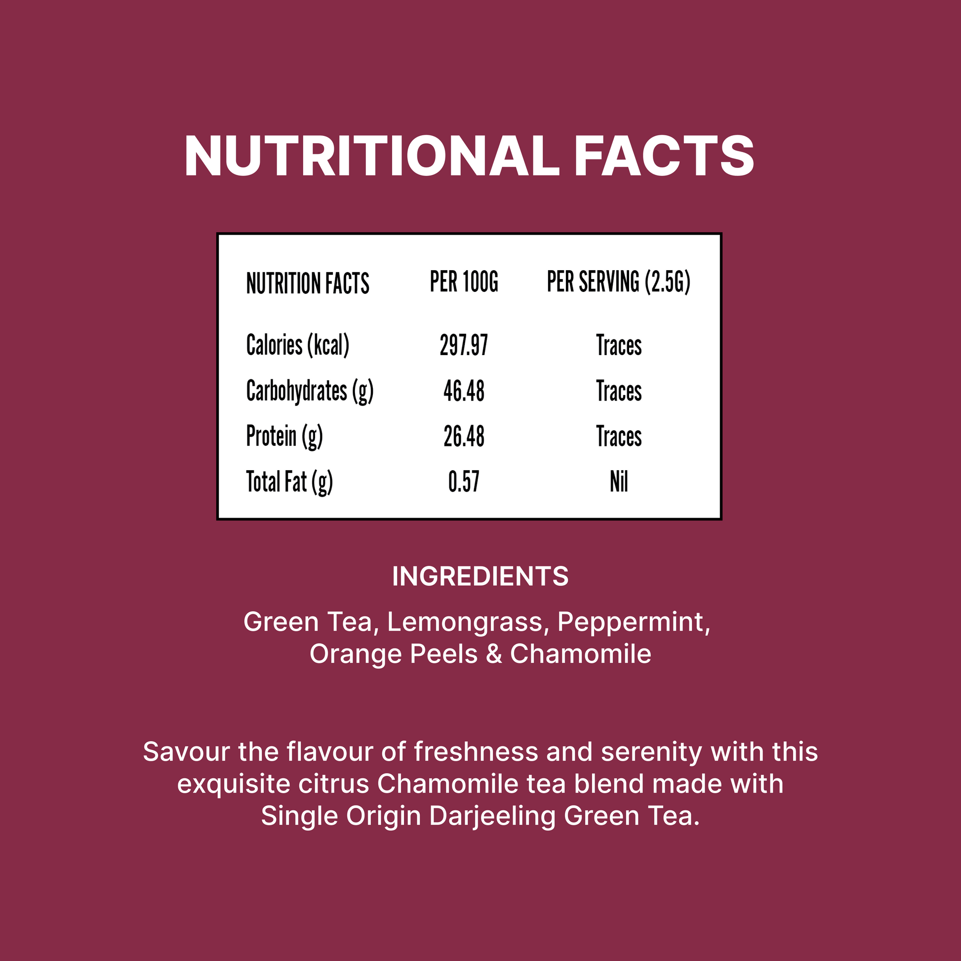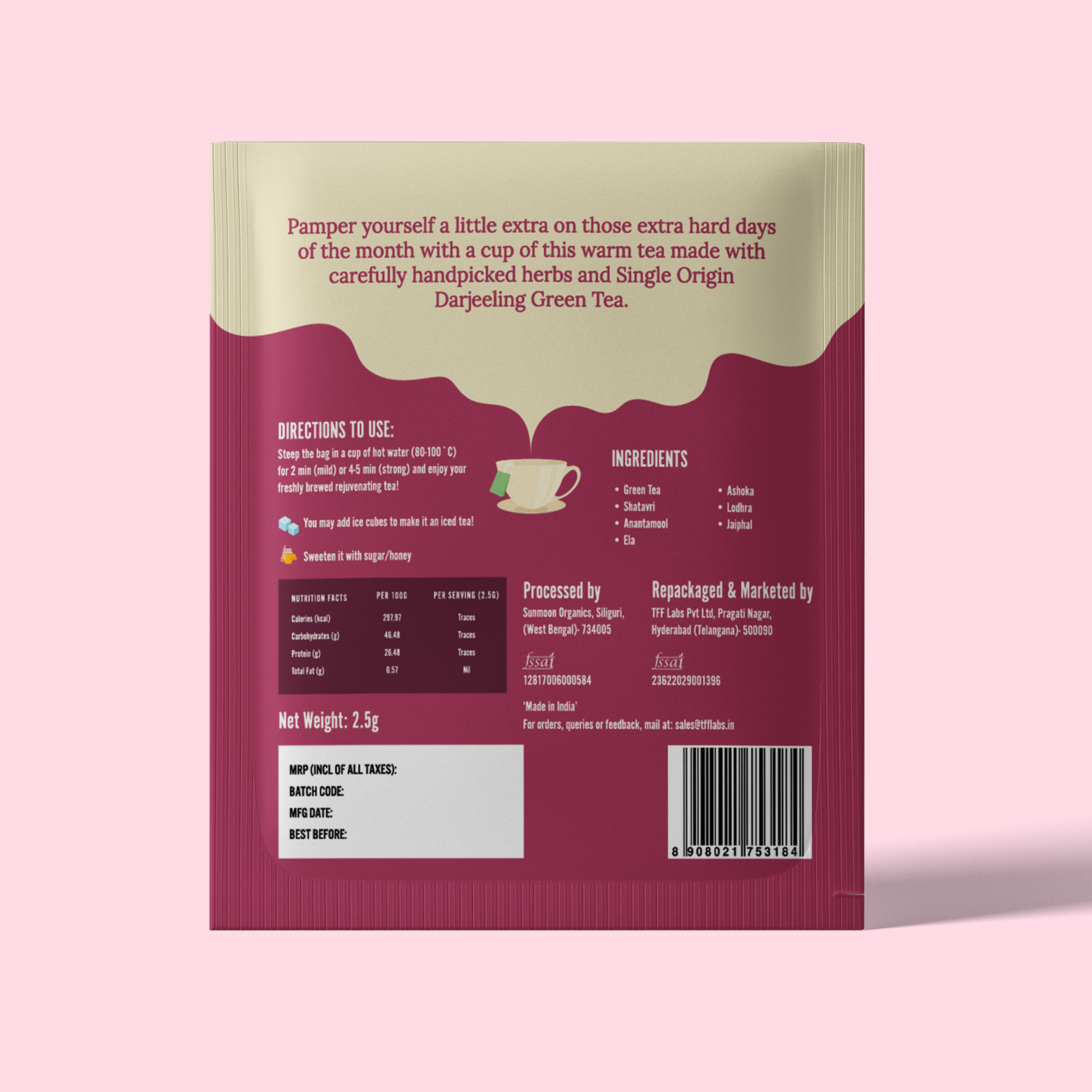 Pamper yourself a little extra on those extra hard hard days of the month with a cup of this warm tea made with carefully handpicked herbs and Single Origin Darjeeling Green Tea
