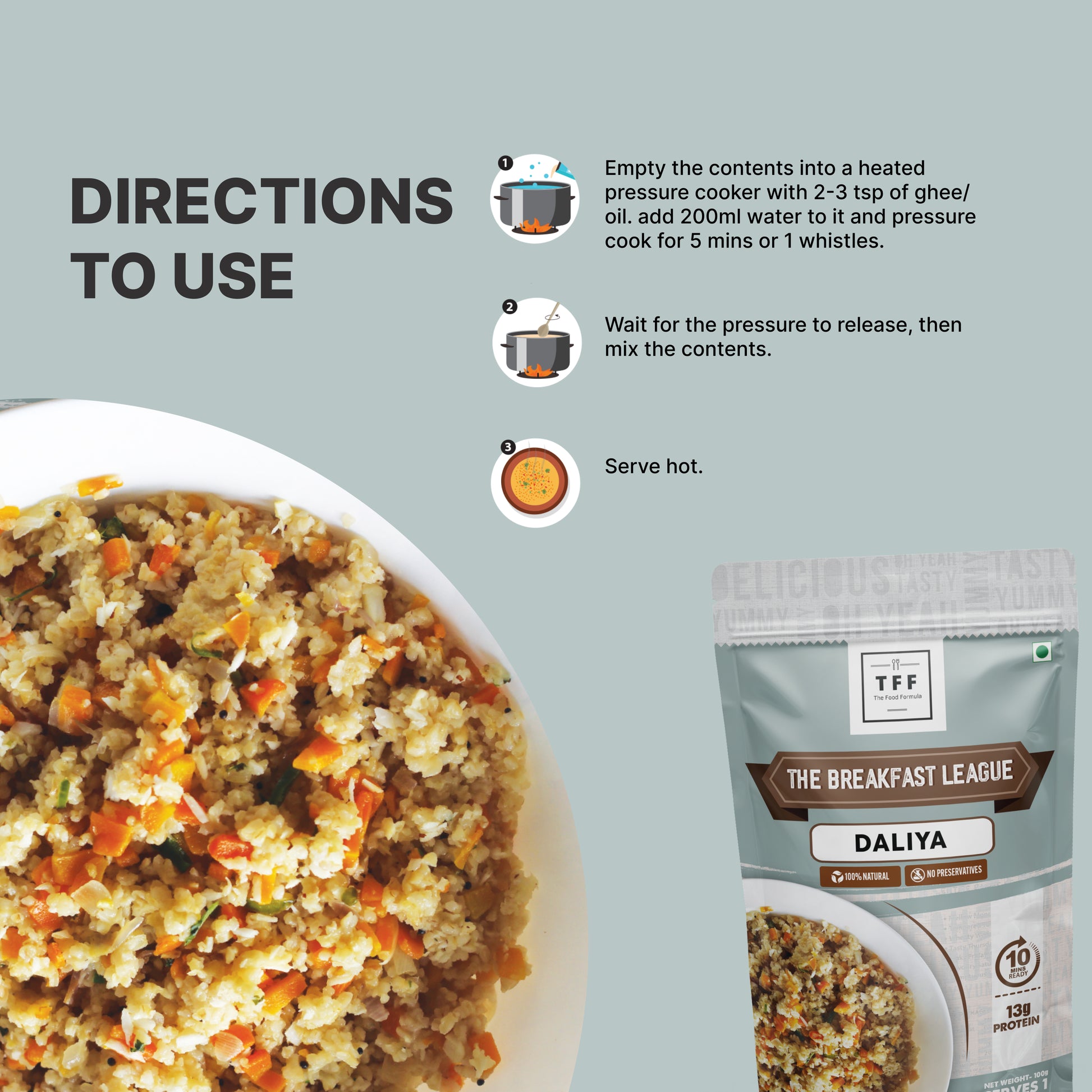 Wednesdays are going to get more wonderful with the wholesome wheat daliya. Indulge in this nutritious breakfast and give a powerful start to your day in 3 Easy Steps!