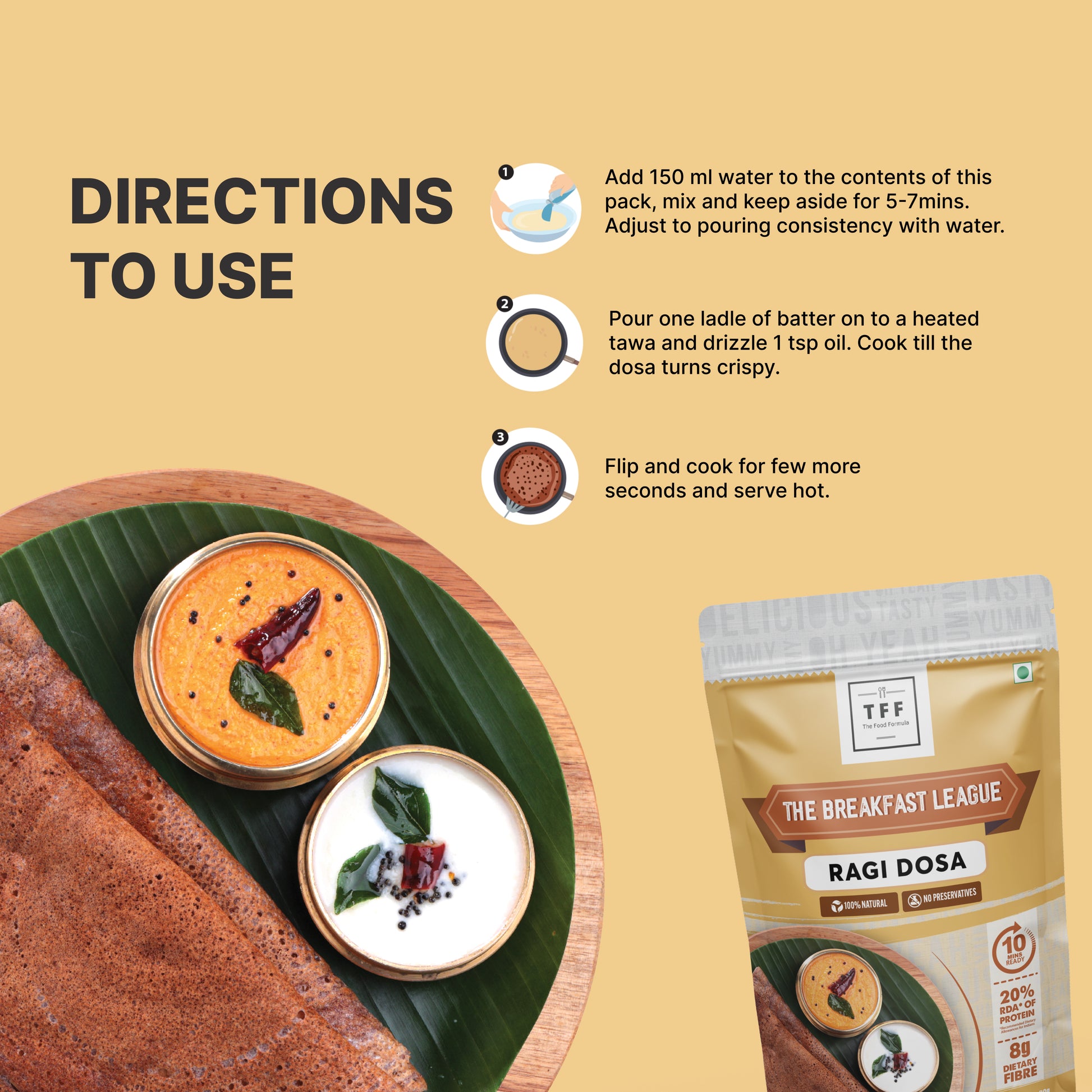 Now make Monday morning blues a thing of past with the nutrition packed millet dosa. Add the goodness of Ragi to crispy dosa and give a powerful start to your day in 3 Easy Steps!